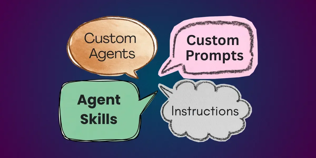 GitHub Copilot gives you four main ways to shape its behaviour: custom agents, custom prompts, agent skills, and custom instructions. Each one serves a different purpose, but the lines between them can feel blurry. Here’s a practical breakdown.